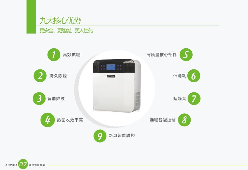 AIRSPA恒氧恒凈新風(fēng)凈化機(jī)主要核心部件(全熱交換芯、控制板、二氧化碳傳感器等)均采用國(guó)際知名品牌產(chǎn)品、質(zhì)量可靠、性能優(yōu)良。